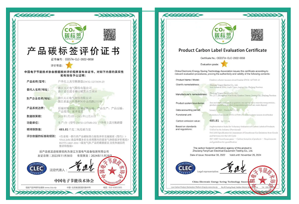 此次碳标签评价表明,AG旗舰厅电气生产的户外柱上真空断路产品,在碳排放大数据方面按国际通行惯例推进,并具备一定的优势,对促进产品全供应链的温室气体减排,达成“双碳”目标具有积极作用。此外,AG旗舰厅还获中国电子节能技术协会颁发的低碳产品供应商证书。